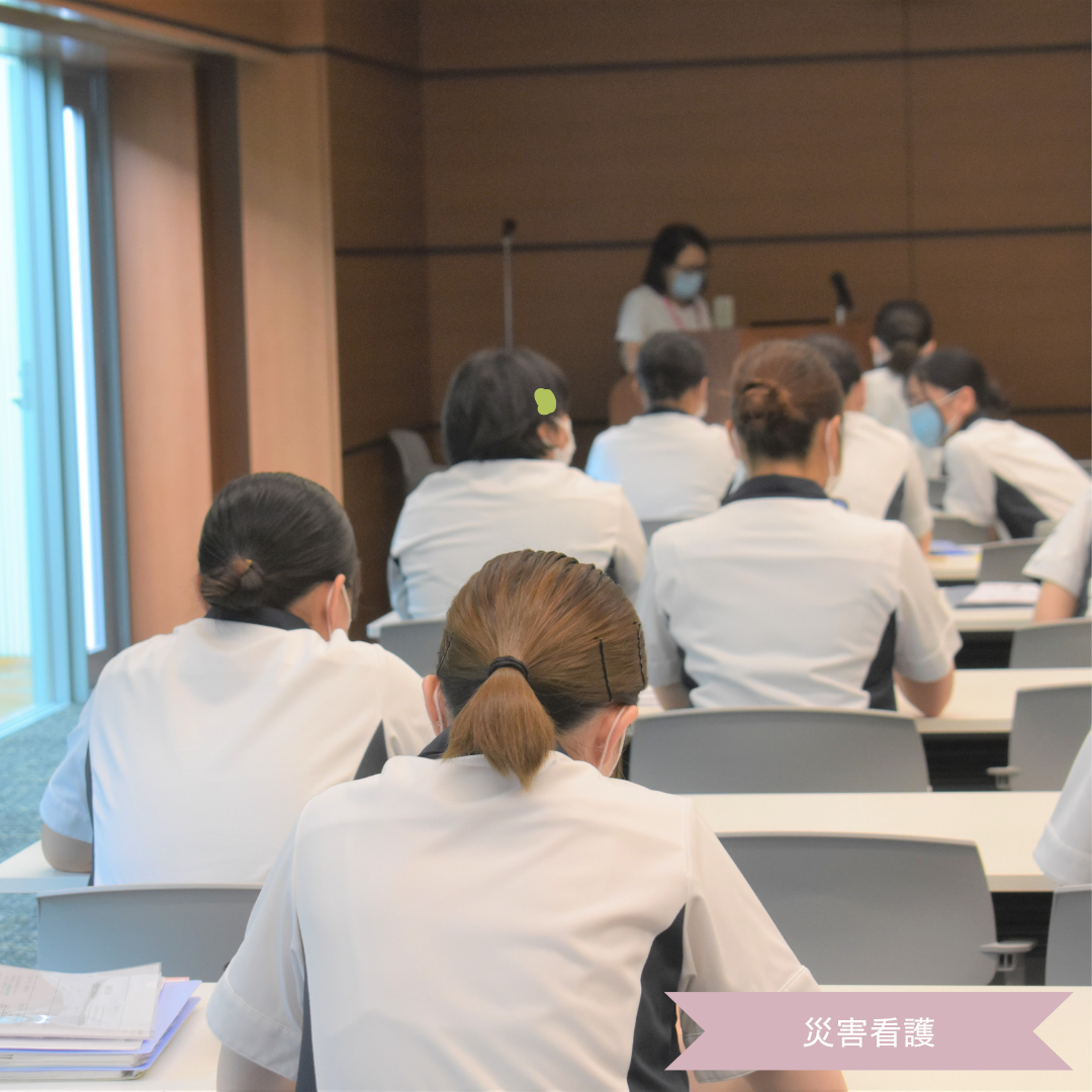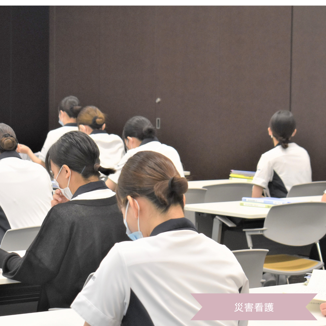 「災害看護」では、米田看護師長による講義を受講し、「いつか必ず起こる災害に向けて日頃から準備をしたり、救護に必要な知識を深めることが重要であると学んだ。実際の災害救護の実績なども知ることができ、大変勉強になった」「災害看護について看護師としてできることと、ひとりの人間として準備できることもあると思ったので実践していきたい」などの感想が聞かれました。