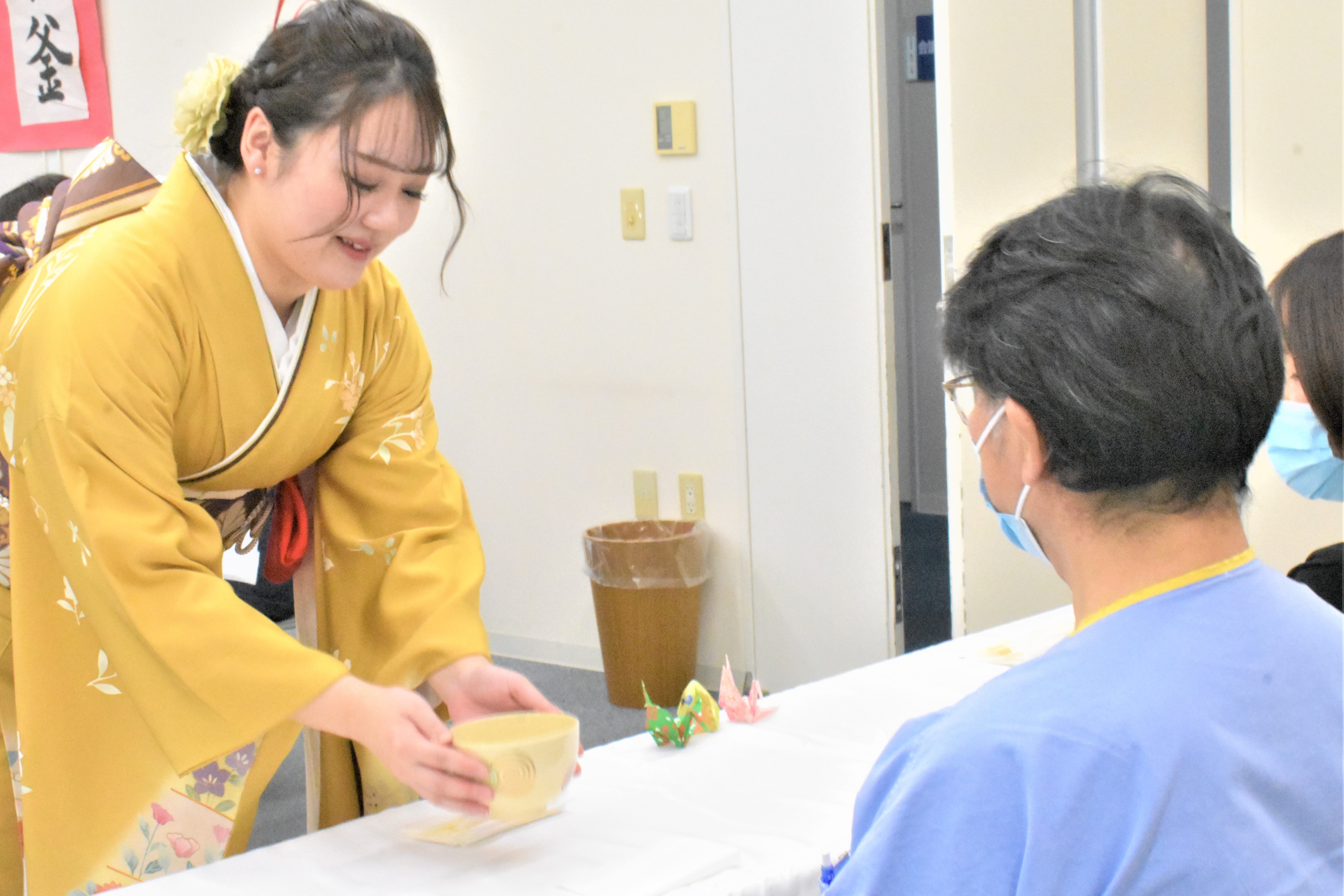 約650名の職員が抹茶とお菓子を頂き、改めて職員自身が今年一年を健康に過ごすことを祈ることができました。